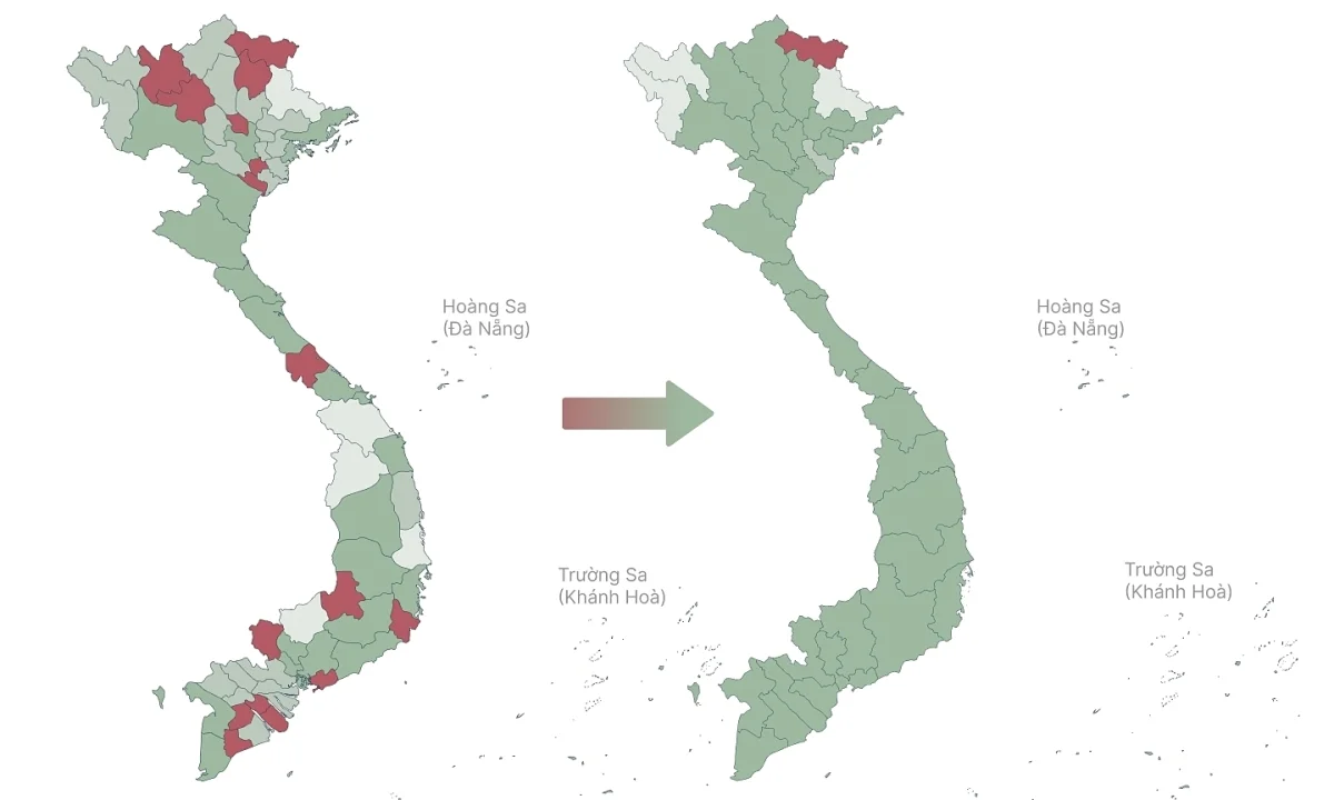 | Số lượng Tỉnh | 58 | 28 | Giảm 30 tỉnh |